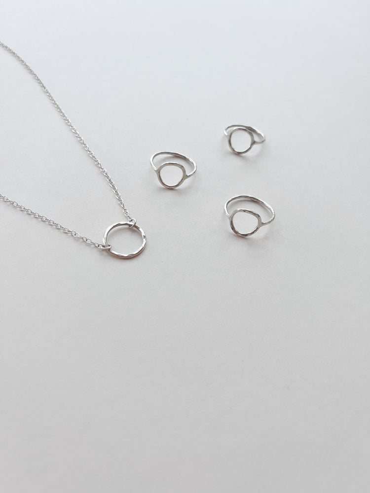 Hammered sterling silver circle wire pendant on a 16" chain.