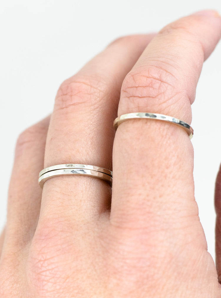 Let our handcrafted, delicately-hammered silver stacking rings form the foundation of your jewellery collection. These simple, elegant rings can be worn individually, stacked together, or mixed and matched with our other rings. These rings are more than just accessories; they provide you with a canvas to express your style and customise your look.